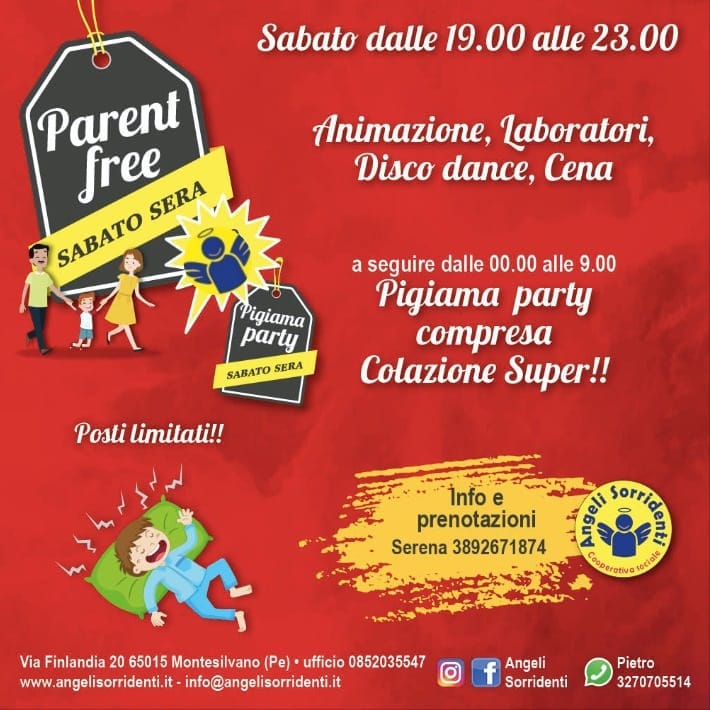 NOI SIAMO PRONTI !!!???? VOI SIETE PRONTI ??? SABATO 30 DICEMBRE Ritorna il nostro super :: PARENT FREE + PIGIAMA PARTY…. ????L’iniziativa si terrà nella nostra sede in via finlandia 20. ???? Per festeggiare insieme la fine del 2023. ???????????????? dalle ore 19:00 alle ore 23. ???? Per chi desidera partecipare solo alla festa Invece …