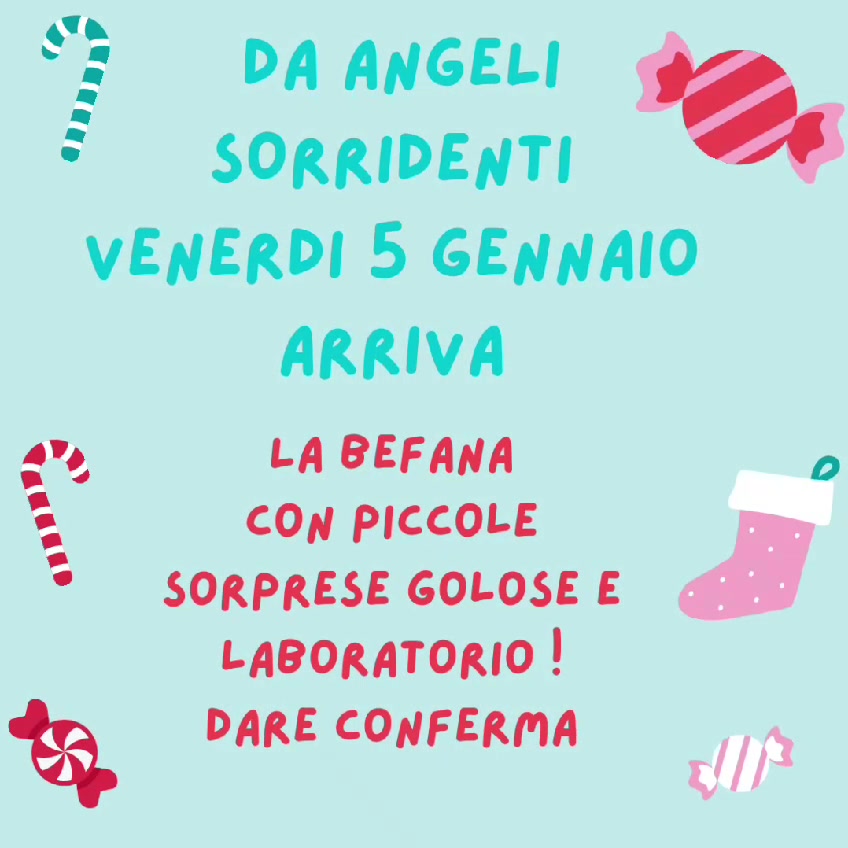 Vi aspettiamo venerdi mattina 5 gennaio. La befana arriva anche da ANGELI SORRIDENTI per consegnare a tutti i bambini presenti dolcetti sorprendenti con un fantastico laboratorio!